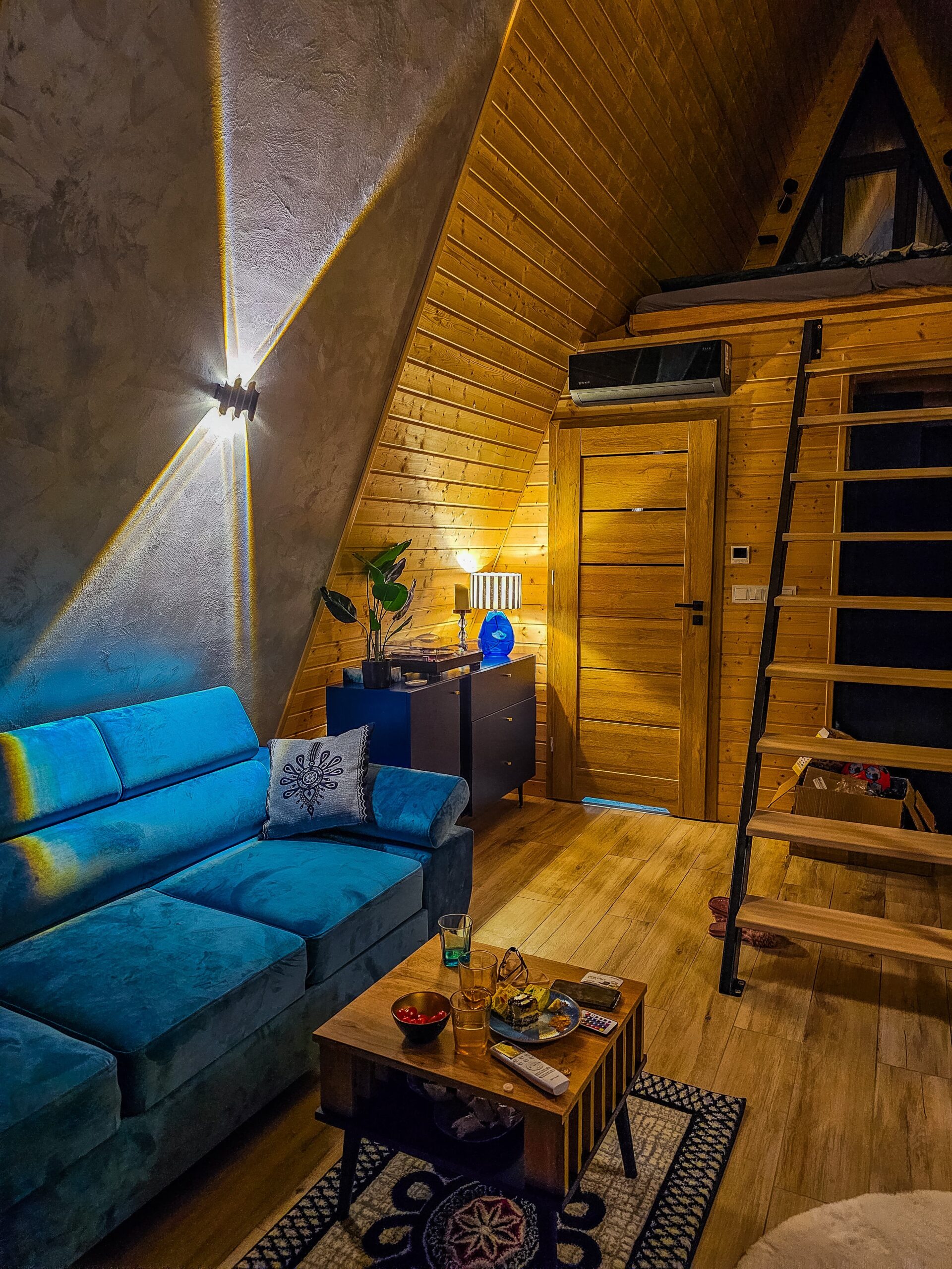The cottage is decorated in a warm, modern style with a touch of boho and Scandinavian simplicity. Bright colors, natural materials and large windows create a relaxing atmosphere for relaxing at any time of the year.